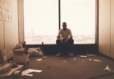 O. M. is a self-portrait of Wolfgang Tillman’s after the death of his partner, Jochen Klein. The place is very important to the purpose and story of this photo, Wolfgang sitting in a small empty room, surrounded by rubbish, paintings, and moving boxes. Wolfgang sitting just off the centre of the room while looking off into the distance in despair, as if he is looking straight through the camera, while also having his back turned on the world behind him almost like the world has betrayed him. This photo was taken while cleaning out Jochen Klein after his death.