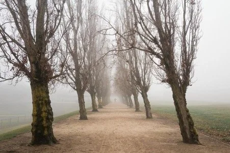 With my final images, I wanted to try and keep all of them very linear and along the same path with the key focus being what is in the centre of the image. This image heavily influenced my chosen creative path due to the lines used and the figure deep in the fog. By using the trees and the path as the main lines of the image, it gives the audience somewhat of a direction to look. I wanted this in my shots as the main focus was with the sign on the building, the person in the laundrette, or the door at the end of the hallway.